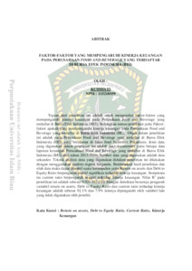 Kusmiati, Kusmiati (2018) Faktor-Faktor Yang Mempengaruhi Kinerja Keuangan Pada Perusahaan Food And Beverage Yang Terdaftar Di Bursa Efek Indonesia (Bei). Other thesis, Universitas Islam Riau.