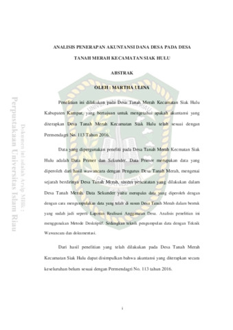Ulina, Martha (2018) Nalisis Penerapan Akuntansi Dana Desa Pada Desa Tanah Merah Kecamatan Siak Hulu. Other thesis, Universitas Islam Riau.