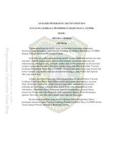 Ardina, Melika (2018) Analisis Penerapan Akuntansi Pada Yayasan Lembaga Pendidikan Bukit Raya (Ylpbr). Other thesis, Universitas Islam Riau.