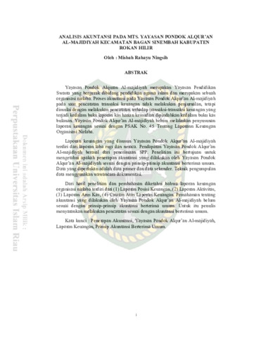 Ningsih, Misbah Rahayu (2018) Analisis Akuntansi Pada Mts. Yayasan Pondok Alqur’an Al-Majidiyah Kecamatan Bagan Sinembah Kabupaten Rokan Hilir. Other thesis, Universitas Islam Riau.