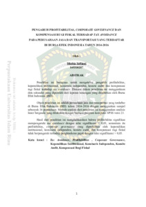 Penelitian ini bertujuan untuk mengetahui pengaruh profitabilitas,kepemilikan institusional, komisaris independen, komite audit, dan kompensasi rugi fiskal terhadap tax avoidance. Dimana dalam penelitian ini menggunkaan data sekunder yang diperoleh dari laporan keuangan yang diterbitkan oleh Bursa Efek Indonesia (BEI). Objek penelitian ini adalah perusahaan jasa dan transportasi yang terdaftar di Bursa Efek Indonesia (BEI) tahun 2014-2016 dengan menggunkan sampel sebanyak 34 perusahaan. Metode analisis dari penelitian ini menggunakan analisis linier berganda yang dilakukan dengan bantuan program komputer SPSS versi 23. Hasil dari penelitian ini mengindikasikan bahwa profitabilitas signifikan mempengaruhi tax avoidance dengan nilai signifikansi < 0,05, sementara itu profitabilitas, corporate governance yang diproksikan oleh kepemilikan institusional, komisaris independen, komite audit, dan kompensasi rugi fiskal tidak berpengaruh terhadap penghindaran pajak dengan nilai signifikansi > 0,05.