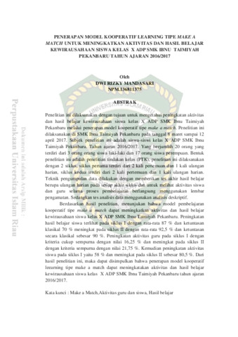 Mandasari, Dwi Rizky (2017) Penerapan Model Kooperatif Learning Tipe Make A Match Untuk Meningkatkan Aktivitas dan Hasil Belajar Kewirausahaan Siswa Kelas X ADP SMK Ibnu Taimiyah Pekanbaru Tahun Ajaran 2016/2017. Other thesis, Universitas Islam Riau.