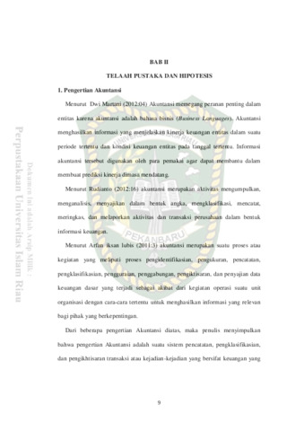 Wahyuni, Niken (2018) Faktor- Faktor Yang Mempengaruhi Ketepatan Waktu Pelaporan Keuangan Pada Perusahaan Pulp Dan Kertas Yang Terdaftar Di Bursa Efek Indonesia. Other thesis, Universitas Islam Riau.