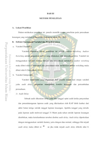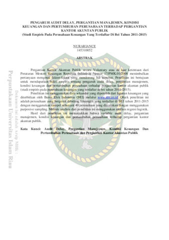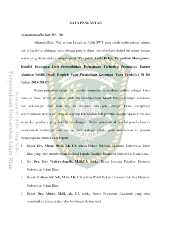 Nurariance, Nurariance (2018) Pengaruh Audit Delay, Pergantian Manajemen, Kondisi Keuangan Dan Pertumbuhan Perusahaan Terhadap Pergantian Kantor Akuntan Publik (Studi Empiris Pada Perusahaan Keuangan Yang Terdaftar Di Bei Tahun 2011-2015). Other thesis, Universitas Islam Riau.