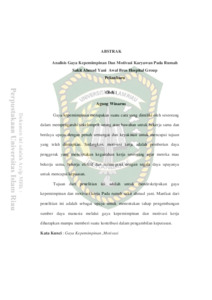 Winarno, Agung (2018) Analisis Gaya Kepemimpinan Dan Motivasi Karyawan Pada Rumah Sakit Ahmad Yani Awal Bros Hospital Group. Other thesis, Universitas Islam Riau.
