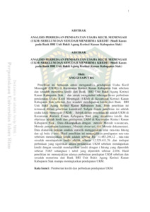 Penelitian ini bertujuan untuk menganalisis pendapatan Usaha Kecil Menengah (UKM)) di Kecamatan Kerinci Kanan Kabupaten Siak sebelum dan sesudah menerima kredit dari Bank BRI Unit Bukit Agung Kerinci Kanan Kabupaten Siak dan untuk mengetahui seberapa besar perbedaan pendapatan Usaha Kecil Menengah (UKM) di Kecamatan Kerinci Kanan Kabupaten Siak sebelum dan sesudah mendapatkan kredit dari Bank BRI Unit Bukit Agung Kerinci Kanan Kabupaten Siak. Jenis penelitian initermasuk dalam penelitian kuantitatif. Subjek dalam penelitian ini adalah usaha kecil menengah (UKM) . Subjek dalam penelitian ini adalah UKM di Kecamatan Kerinci Kanan Kabupaten Siak yang menerima kredit, dan objeknya adalah kredi dan pendapatan UKM di Kecamatan Kerinci Kanan Kabupaten Siak . Data dikumpulkan dengan metode Metode wawancara, Metode penyebaran kuisioner , Metode observasi, dan Metode dokumentasi. Data dianalisis dengan analisis statistik menggunakan nilai rata-rata hitung dan uji beda (t-test). Hasil penelitian ini menunjukkan pendapatan rata-rata sebelum mendapatkan kredit adalah sebesar Rp. 11.485.294,12 , rata-rata sesudah mendapatkan kredit adalah sebesar 12.529.411,76 ,dan terdapat perbedaan yang signifikan antara pendapatan UKM sebelum mendapatkan kredit dengan sesudah mendapatkan kredit dengan t hitung yang diperoleh sebesar 5.065 sedangkan t tabel yang diperoleh sebesar 2.036. Hasil penelitian ini menunjukkan adanya perbedaan pendaptan UKM sebelum dan sesudah menerima dari Bank BRI Unit Bukit Agung Kerinci Kanan Kabupaten Siak mampu meningkatkan pendapatan UKM.