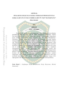 Ardaus, Ardaus (2018) Pengaruh Lingkungan Kerja Terhadap Produktivitas Kerja Karyawan Pada Pabrik Karet Pt. P&P “Bangkinang” Pekanbaru. Other thesis, Universitas Islam Riau.