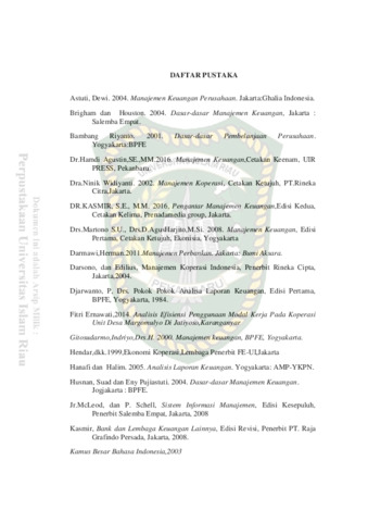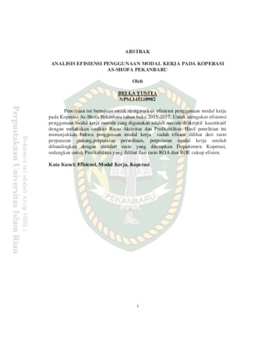 Yunita, Bella (2018) Analisis Efisiensi Penggunaan Modal Kerja Pada Koperasi As-Shofa Pekanbaru. Other thesis, Universitas Islam Riau.