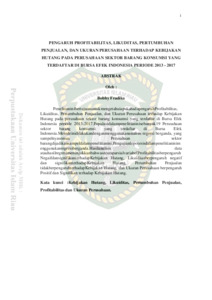 Fradika, Bobby (2018) Pengaruh Profitabilitas, Likuditas, Pertumbuhan Penjualan, Dan Ukuran Perusahaan Terhadap Kebijakan Hutang Pada Perusahaan Sektor Barang Konsumsi Yang Terdaftar Di Bursa Efek Indonesia Periode 2013 - 2017. Other thesis, Universitas Islam Riau.