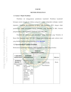 This study aims to determine whether there is an effect of Profitability, Liquidity, Sales Growth, and Company Size on Debt Policy in consumer goods sector companies listed on the Indonesia Stock Exchange for the period 20132017. The population in this study were 19 consumer goods sector companies listed on the Indonesia Stock Exchange. This method is done by using purposive sampling, which is a sample of all goods sector companies sampled in this study. Testing the hypothesis in this study using multiple regression. The results of data analysis or regression results indicate that partially the Profitability variable has a negative and significant effect on Debt Policy, Liquidity has a negative and significant effect on Debt Policy, Sales Growth has no effect on Debt Policy, and Company Size has a Positive and Significant Effect on Debt Policy. While simultaneously the variable Profitability, Liquidity, Sales Growth, and Company Size jointly influence the Debt Policy.