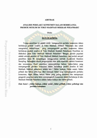 Syafrina, Elvi (2018) Analisis Perilaku Konsumen Dalam Berbelanja Produk Muslim Di Toko Madinah Mekkah Pekanbaru. Other thesis, Universitas Islam Riau.