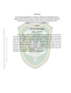 PT.Tri Bakti Sarimas atau yang disingkat menjadi TBS adalah perusahaan yang bergerak di bidang industri, pertanian dan produksi minyak kelapa sawit.Tujuan yang ingin dicapai dalam peneliti ini adalah untuk mengetahui pengaruh kedisiplinan kerja karyawan terhadap produktivitas kerja karyawan bagian panen pada PT.Tri Bakti Sarimas (TBS) Unit Estate Pangkalan Kecamatan pucuk Rantau Kabupaten Kuantan Singingi. Penelitian ini melibatkan 50 orang karyawan bagian pemanen dengan pendidikan jenjang SD,SMP, SMA yang dipilih sebagai sampel agar dapat diketahui lebih akurat tentang penilaian Kedisiplinan dan Produktivitas para karyawan. Teknik pengumpulan data menggunakan kuesioner dan datanya dianalisis dengan analisis regresi linier sederhana.