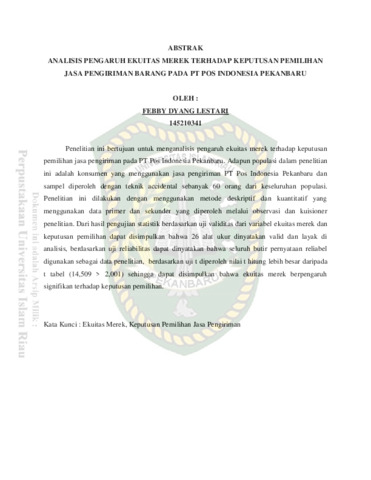 Lestari, Febby Dyang (2018) Analisis Pengaruh Ekuitas Merek Terhadap Keputusan Pemilihan Jasa Pengiriman Barang Pada Pt Pos Indonesia Pekanbaru. Other thesis, Universitas Islam Riau.