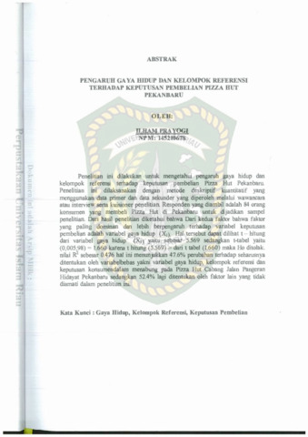 Prayogi, Ilham (2018) Pengaruh Ga Ya Hidup Dan Kelompok Referensi Terhadap Keputusan Pembelian Pizza Hut Pekanbaru. Other thesis, Universitas Islam Riau.