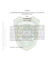 Rosedelima, Ita (2018) Analisis Promosi Jabatan Pada Pt. Tunggal Yunus Estate Petapahan ( Agri ). Other thesis, Universitas Islam Riau.