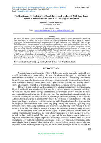 Ardison, Ardison and Rahmadani, Ahmad (2024) The Relationship Of Explosive Leg Muscle Power And Leg Length With Long Jump Results In Students Private Class Viii1 SMP Negeri 6 Siak Hulu. International Journal Of Humanities Education and Social Sciences, 4 (1). pp. 499-507. ISSN 2808-1765