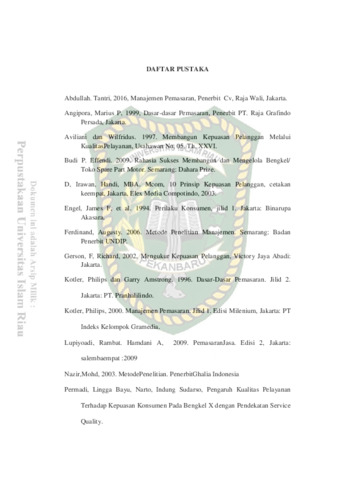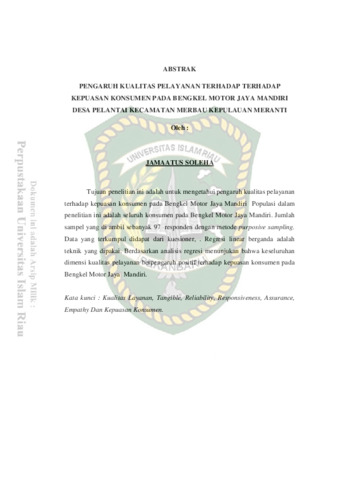 Soleha, Jamaatus (2018) Pengaruh Kualitas Pelayanan Terhadap Terhadap Kepuasan Konsumen Pada Bengkel Motor Jaya Mandiri Desa Pelantai Kecamatan Merbau Kepulauan Meranti. Other thesis, Universitas Islam Riau.