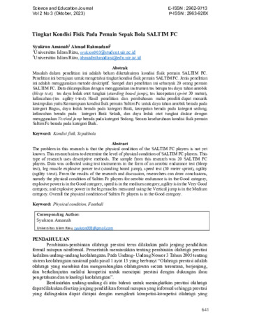 Amanah, Syukron and Rahmadani, Ahmad (2023) Tingkat Kondisi Fisik Pada Pemain Sepak Bola SALTIM FC. Science and Education Journal (SICEDU), 2 (3). pp. 641-650. ISSN 2962-9713