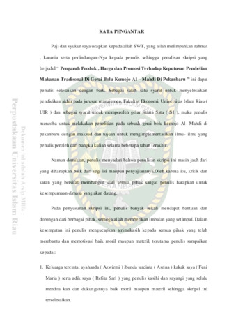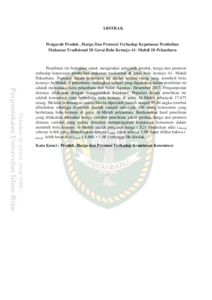 Yulisna, Marni (2018) Pengaruh Produk , Harga Dan Promosi Terhadap Keputusan Pembelian Makanan Tradisional Di Gerai Bolu Kemojo Al- Mahdi Di Pekanbaru. Other thesis, Universitas Islam Riau.