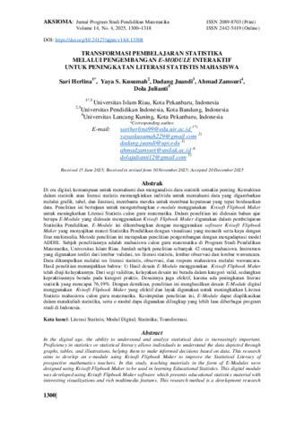 1. Transformasi Pembelajaran Statistika melalui Pengembangan E-Module Interaktif.pdf - Published Version Download (1MB) | Preview |