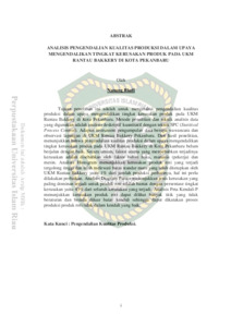 Tujuan penelitian ini adalah untuk mengetahui pengendalian kualitas produksi dalam upaya mengendalikan tingkat kerusakan produk pada UKM Rantau Bakkery di Kota Pekanbaru. Metode penelitian dan teknik analisis data yang digunakan adalah analisis deskriptif kuantitatif dengan teknik SPC (Statitical Process Control). Adapun instrument pengumpulan data berupa wawancara dan observasi lapangan di UKM Rantau Bakkery Pekanbaru. Dari hasil penelitian, menunjukkan bahwa pengendalian kualitas produksi dalam upaya mengendalikan tingkat kerusakan produk pada UKM Rantau Bakkery di Kota Pekanbaru belum berjalan dengan baik. Secara umum, faktor utama yang menyebabkan terjadinya kerusakan adalah disebabkan oleh faktor bahan baku, manusia (pekerja) dan mesin. Analisis Histogram menunjukkan kerusakan produk roti yang terjadi tergolong tinggi dan telah melewati batas standar mutu yang telah ditetapkan oleh UKM Rantau Bakkery yaitu 1% dari jumlah produksi perharinya, hal ini perlu dilakukan perbaikan. Analisis Diagram Pareto menunjukkan jenis kerusakan yang paling dominan terjadi untuk produk roti adalah bantat dengan persentase tingkat kerusakan yaitu 43% dari seluruh kerusakan yang terjadi. Analisis Peta Kendali P menunjukkan kerusakan produk roti dapat dilihat banyak titik yang tidak beraturan dan berada diluar batas kendali sehingga dapat dikatakan proses produksi produk roti tidak dalam kendali yang baik.