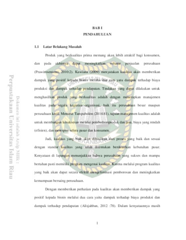 Riadi, Nanang (2018) Analisis Pengendalian Kualitas Produksi Dalam Upaya Mengendalikan Tingkat Kerusakan Produk Pada Ukm Rantau Bakkery Di Kota Pekanbaru. Other thesis, Universitas Islam Riau.