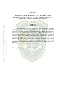 Noniulpa, Noniulpa (2018) Pengaruh Lingkungan Kerja Dan Motivasi Kerja Terhadap Kinerja Karyawan Pada Bagian Produksi Pt.Rotte Ragam Rasa (Pt.Rrr) Pekanbaru. Other thesis, Universitas Islam Riau.