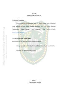 The purpose of this research is to know and to analyze the effect of working environment and working motivation toward the employee’s performance on PT. Rotte Ragam Rasa (PT.RRR) Pekanbaru and to know is there any significant effect employee’s performance. The population of this research is the production employees on PT. Rotte Ragam Rasa Pekanbaru. The sample is 31 employees. The technique of data collection in this research were is by interviews, observations and questionnaire with data analysis technique of descriptive and quantitative design. The results of the research generally concluded the working environment and working motivation toward employee’s performance on PT.Rotte Ragam Rasa (PT.RRR) Pekanbaru is satisfy. It is proved by calculation result of f-calculated is bigger than f-tabel and t-calculated is also bigger than t table.