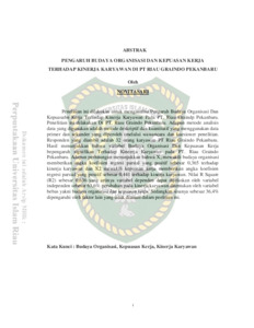 Novitasari, Novitasari (2018) Pengaruh Budaya Organisasi Dan Kepuasan Kerja Terhadap Kinerja Karyawan Di Pt Riau Graindo Pekanbaru. Other thesis, Universitas Islam Riau.