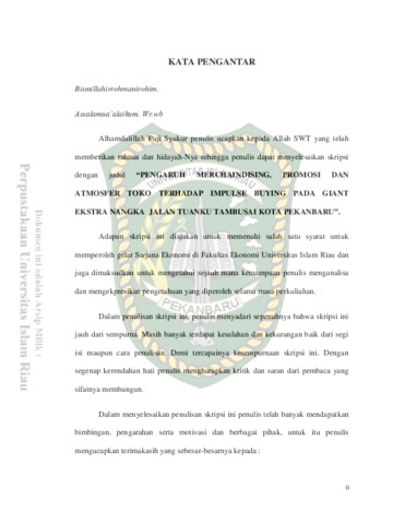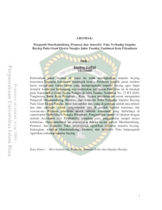 Syafitri, Riadus (2018) Pengaruh Marchaindising, Promosi, dan Atmosfer Toko Terhadap Impulse Buying Pada Giant Ekstra Nangka Jalan Tuanku Tambusai Kota Pekanbaru. Other thesis, Universitas Islam Riau.