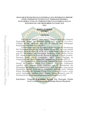 Rahman, Robiul (2018) Pengaruh Pengendalian Internal Dan Penerapan Prinsip Good Corporate Governance Terhadap Kinerja Manajerial Pada Pt. Perindustrian Dan Perdagangan Bangkinang Crumb Rubber Factory Sgf. Other thesis, Universitas Islam Riau.