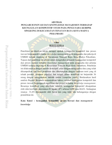 Edila, Rosti (2018) Pengaruh Inovasi Dan Knowledge Manajemen Terhadap Keunggulan Kompetitif Studi Pada Pengusaha Keripik Singkong Di Kecamatan Tenayan Raya Kota Madya Pekanbaru. Other thesis, Universitas Islam Riau.