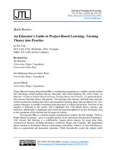 Wahyuni, Sri and Setyo Putro, Nur Hidayanto Pancoro and Efendi, Anwar (2025) An Educator’s Guide to Project-Based Learning: Turning Theory into Practice. Journal of Teaching and Learning, 19 (5). pp. 285-287. ISSN 1911-8279