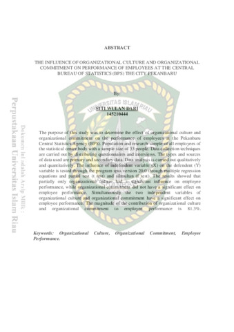 Pengaruh Budaya Organisasi Dan Komitmen Organisasional Terhadap Kinerja Karyawan Pada Badan Pusat Statistik (Bps) Kota Pekanbaru