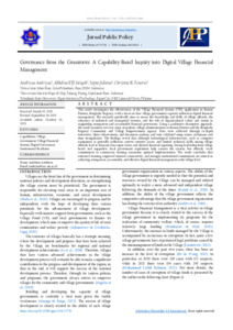 Andriyus, Andriyus and Istiqoh, Akhdiva Elfi and Juliana, Septa and Tenorio, Christine B. (2025) Governance from the Grassroots: A Capability-Based Inquiry into Digital Village Financial Management. Jurnal Public Policy, 11 (4). pp. 397-402. ISSN 2502-0528