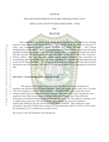Utari, Sri (2018) Pengaruh Pengembangan Karir Terhadap Kepuasan Kerja Karyawan Pt Dimas Drillindo – Duri. Other thesis, Universitas Islam Riau.