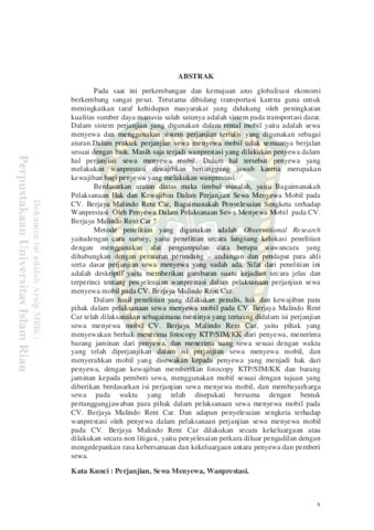 Fadila, Nur (2018) Penyelesaian Wanprestasi Dalam Perjanjian Sewa Menyewa Mobil Antara Penyewa Dengan CV. Berjaya Malindo Rent Car Di Kota Pekanbaru. Other thesis, Universitas Islam Riau.