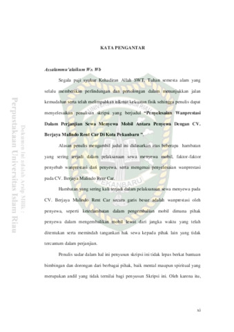 Penyelesaian Wanprestasi Dalam Perjanjian Sewa Menyewa Mobil Antara Penyewa Dengan CV. Berjaya Malindo Rent Car Di Kota Pekanbaru
