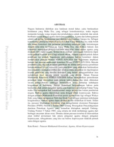 Uncontrolled Keywords: Putusan Mahkamah Konstitusi, Agama, Aliran Kepercayaan