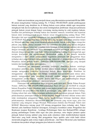 Salah satu konsideran yang menjadi alasan yang dikemukakan pemerintah RI dan DPRRI untuk mengeluarkan Undang-undang No. 8 Tahun 1981(KUHAP) adalah pembangunan hukum nasional yang demikian itu di bidang hukum acara pidana adalah agar masyarakat menghayati hak dan kewajibannya dan untuk meningkatkan pembinaan sikap para pelaksana penegak hukum sesuai dengan fungsi wewenang masing-masing ke arah tegaknya hukum, keadilan dan perlindungan terhadap harkat dan martabat manusia, ketertiban dan kepastian hukum demi terselanggaranya negara hukum sesuai dengan Undang-undang Dasar 1945. Berangkat dari agar masyarakat menghayati hak dan kewajiban maka termaktub dalam Pasal 229 KUHAP. Hak pengantian biaya terhadap saksi yang menjadi topik dalam penulian skripsi ini. Menjadi saksi bagi orang awam bukanlah perkara mudah, banyak waktu, biaya, tenaga dan pikiran yang tersita, adanya ancaman, teror dan intimidasi dari pihak yang merasa dirugikan dengan kesaksiannya, belum lagi terkadang aparat penegak hukum memperlakukan saksi sama dengan tersangka atau terdakwa, harus bersumpah memberi keterangan dengan benar serta diancam dengan pidana bila tidak hadir. idelnya kewajiban berbanding lurus dengan hak agar tercipta keselarasan dan keseimbangan. Berdasarkan uraian di atas penulis mencoba menganalisa 2 (dua) pokok permasalahan: bagaimana penerapan hak penggantian biaya terhadap saksi yang telah hadir dalam pemeriksaan dalam tindak pidana korupsi di Pengadilan Pekanbaru dalam perkara Nomor. 28/Pid.Sus-TPK/2016/PN.PBR. dan apa yang menjadi kendala dan hambatan dalam penerapannya. Penelitian ini merupakan penelitian sosiologis, Penelitian hukum sosiologis merupakan penelitian yang melihat korelasi antara hukum dengan masyarakat, sehingga mampu mengungkap efektifitas berlakunya hukum dalam masyarakat. Penelitian ini menggunakan alat pengumpul data berupa wawancara dan kuesioner pada semua saksi, penulis menggunakan jenis penelitian deskriptif analitis, dengan metode pendekatan menggunakan yuridis empiris. Adapun analisa data dengan cara membandingkan dengan perundang undangan dan peraturan – peraturan hukum. Penerapan hak mendapatkan biaya pengganti pada saksi pada Tindak Pidana Korupsi Nomor. 28/Pid.Sus-TPK/2016/PN.PBR.berdasarkan Pasal 229 ayat (1) KUHAP di wilayah hukum Pengadilan Negeri Pekanbaru pada semua tingkat pemeriksaan yakni khususnya pada penyelidikan dan penyidikan serta hadir di persidangan yang sudah diatur dalam UndangUndang terkait hak saksi belum mendapat perhatian penuh dari aparat penegak hukum. Pada pelaksanaannya penerapan hukum ini belum berjalan dengan maksimal dimana semua saksi tidak mendapatkan penggantian biaya, karena masih terdapat beberapa hambatan dalam pelaksanaannya. diantaranya dikarenakan tidak ada peraturan yang secara tegas, jelas dan terperinci yang mengatur sebagai Petunjuk Pelaksanaan (Juklak) dan Petunjuk Teknis dari KUHAP. Khususnya tentang pasal 229 tentang penggantian biaya terhadap saksi. Faktor Internal yaitu hambatan financial (keuangan), kurangnya koordinasi antara Pengadilan dan Kejaksaan maupun Kepolisian , Lembaga Perlindungan Saksi dan Korban(LPSK) sebagai payung perlindungan Utama tidak tegas dan jelas perannya, serta tingkat peranan aparat penegak hukum kurang optimal yang mana pada umumnya tidak memberitahukan kepada Saksi-saksi yang hadir tentang Hak penggantian biaya apabila saksi telah hadir dalam memenuhi panggilan pada semua tingkat pemeriksaan ; dan Faktor Eksternal yaitu hambatan kesadaran masyarakat sebagai pengguna jasa hukum itu sendiri.