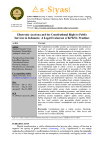 | Uncontrolled Keywords: | Constitutional right to public services; Electronic auction; Legal certainty; Public servicel law; State Assets and Auction Service Office (KPKNL) |