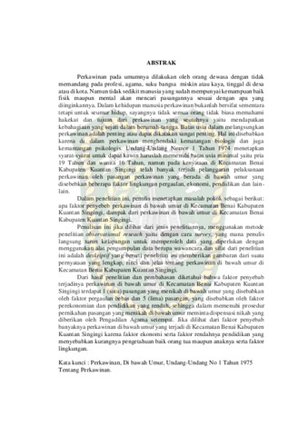Perkawinan pada umumnya dilakukan oleh orang dewasa dengan tidak memandang pada profesi, agama, suku bangsa miskin atau kaya, tinggal di desa atau di kota. Namun tidak sedikit manusia yang sudah mempunyai kemampuan baik fisik maupun mental akan mencari pasangannya sesuai dengan apa yang diinginkannya. Dalam kehidupan manusia perkawinan bukanlah bersifat sementara tetapi untuk seumur hidup, sayangnya tidak semua orang tidak biasa memahami hakekat dan tujuan dari perkawinan yang seutuhnya yaitu mendapatkan kebahagiaan yang sejati dalam berumah-tangga. Batas usia dalam melangsungkan perkawinan adalah penting atau dapat dikatakan sangat penting. Hal ini disebabkan karena di dalam perkawinan menghendaki kematangan biologis dan juga kemantangan psikologis. Undang-Undang Nomor 1 Tahun 1974 menetapkan syarat-syarat untuk dapat kawin haruslah memenuhi batas usia minimal yaitu pria 19 Tahun dan wanita 16 Tahun, namun pada kenyataan di Kecamatan Benai Kabupaten Kuantan Singingi telah banyak terjadi pelanggaran pelaksanaan perkawinan oleh pasangan perkawinan yang berada di bawah umur yang disebebkan beberapa faktor lingkungan pergaulan, ekonomi, pendidikan dan lainlain. Dalam penelitian ini, penulis menetapkan masalah pokok sebagai berikut: apa faktor penyebeb perkawinan di bawah umur di Kecamatan Benai Kabupaten Kuantan Singingi, dampak dari perkawinan di bawah umur di Kecamatan Benai Kabupaten Kuantan Singingi. Penulisan ini jika dilihat dari jenis penelitiannya, menggunakan metode penelitian observational reseach yaitu dengan cara survey, yang mana penulis langsung turun kelapangan untuk memperoleh data yang diperlukan dengan menggunakan alat pengumpulan data berupa wawancara dan sifat dari penelitian ini adalah deskriptif yang berarti penelitian ini memberikan gambaran dari suatu pernyataan yang lengkap, rinci dan jelas tentang perkawinan di bawah umur di Kecamatan Benai Kabupaten Kuantan Singingi. Dari hasil penelitian dan pembahasan diketahui bahwa faktor penyebab terjadinya perkawinan di bawah umur di Kecamatan Benai Kabupaten Kuantan Singingi terdapat 1 (satu) pasangan yang menikah di bawah umur yang disebabkan oleh faktor pergaulan bebas dan 5 (lima) pasangan, yang disebabkan oleh faktor perekonomian dan pendidikan yang rendah, sehingga dalam memenuhi prosedur pernikahan pasangan yang menikah di bawah umur meminta dispensasi nikah yang diberikan oleh Pengadilan Agama setempat. Jika dilihat dari faktor penyebab banyaknya perkawinan di bawah umur yang terjadi di Kecamatan Benai Kabupaten Kuantan Singingi karena faktor ekonomi serta faktor rendahnya pendidikan yang menyebabkan kurangnya pengetahuan baik orang tua maupun anaknya serta faktor lingkungan.