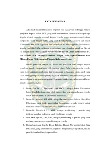 Tirta, Nurmaini (2018) Pelaksanaan Perkawinan Di bawah Umur Berdasarkan UU No. 1 Tahun 1974 Tentang Perkawinan Ditinjau Dari Perspektif Hukum Adat MinangKabau Di Kecamatan Palupuh Kabupaten Agam. Other thesis, Universitas Islam Riau.