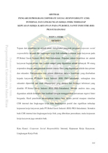 Uncontrolled Keywords: | Corporate Social Responsibility Internal, Kepuasan Kerja Karyawan, Lingkungan Kerja Fisik. |