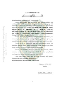 Ardilla, Yudha Fitra (2018) Analisis Faktor-Faktor Yang Mempengaruhi Produktifitas Kerja Dengan Menggunakan Aplikasi Spss (Statistical Product And Service Solution) (Studi Kasus : Proyek Pembangunan Gedung Smkn 1 Kuok Kampar-Riau). Other thesis, Universitas Islam Riau.