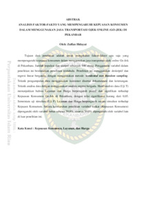 Hidayat, Zulfan (2018) Analisis Faktor-Fakto Yang Mempengaruhi Kepuasan Konsumen Dalam Menggunakan Jasa Transportasi Ojek Online (Go-Jek) Di Pekanbaru. Other thesis, Universitas Islam Riau.