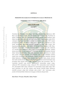 Penelitian ini dilakukan di Lembaga Amil Zakat Inisiatif Zakat Indonesia (IZI) Riau yang beralamat di jalan Paus Perumahan Vila Permata Paus. Penelitian ini dilatar belakangi oleh terus meningkatnya jumlah muzakki pada Lembaga Amil Zakat Inisiatif Zakat Indonesia (IZI) dari tahun 2016 sampai dengan tahun 2018, sedangkan Lembaga Amil Zakat tersebut baru berdiri sejak tahun 2015 namun peningkatan jumlah muzakkinya cukup pesat. Tujuan dari penelitian ini yaitu untuk mengetahui bagaimana persepsi muzakki terhadap zakat profesi dan bagaimanakah penerapan zakat profesi di Inisiatif Zakat Indonesia (IZI) Riau. Penelitian ini bersifat deskriptif. Populasi dalam penelitian ini yaitu sebanyak 277 muzakki yang membayar zakat profesi di Inisiatif Zakat Indonesia. Sampel dalam penelitian ini yaitu sebanyak 73 responden muzakki dan pimpinan Inisiatif Zakat Indonesia (IZI) Riau. Data yang digunakan dalam penelitian ini adalah data primer dan data sekunder. Pengumpulan data primer dilakukan melalui angket dan wawancara yang disebarkan kepada muzakki dan pimpinan Inisiatif Zakat Indonesia. Sedangkan data sekunder diperoleh dari buku, jurnal, internet dan media-media lainnya. Metode yang digunakan adalah statistik deskriptif yaitu penyajian data dengan tabel, grafik, diagram lingkar dan persentase. Dari 73 responden muzakki yang diteliti, sebanyak48% menyatakan sangat setuju, sebanyak 29% menyatakan setuju, sebanyak 18%, menyatakan netral sebanyak 4%, menyatakan tidak setuju, sebanyak 1%, menyatakan sangat tidak setuju. Dari hasil penelitian ini ada dua temuan yaitu”muzaki Inisiatif Zakat Indonesia memiliki persepsi cukup baik terhadap zakat profesi”, dan “penerapan zakat profesi di Inisiatif Zakat Indonesia di anggap terlaksana dengan baik.