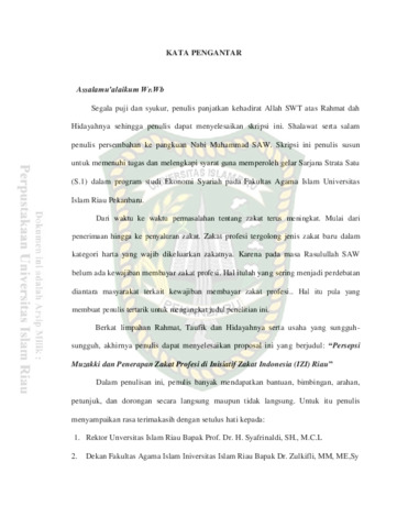 Persepsi Muzakki Dan Penerapan Zakat Profesi Di Inisiatif Zakat Indonesia (Izi) Riau