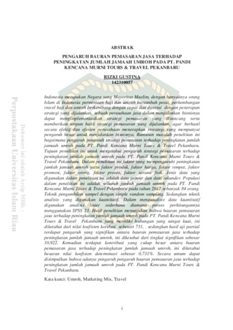 Gustina, Rizki (2018) Pengaruh Bauran Pemasaran Jasa Terhadap Peningkatan Jumlah Jamaah Umroh Pada Pt. Pandi Kencana Murni Tours & Travel Pekanbaru. Other thesis, Universitas Islam Riau.