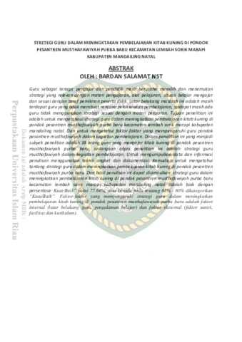 Nst, Bardan Salamat (2018) Stretegi Guru Dalam Meningktakan Pembelajaran Kitab Kuning Di Pondok Pesantren Musthafawiyah Purba Baru Kecamatan Lembah Sorik Marapi Kabupaten Mandailing Natal. Other thesis, Universitas Islam Riau.